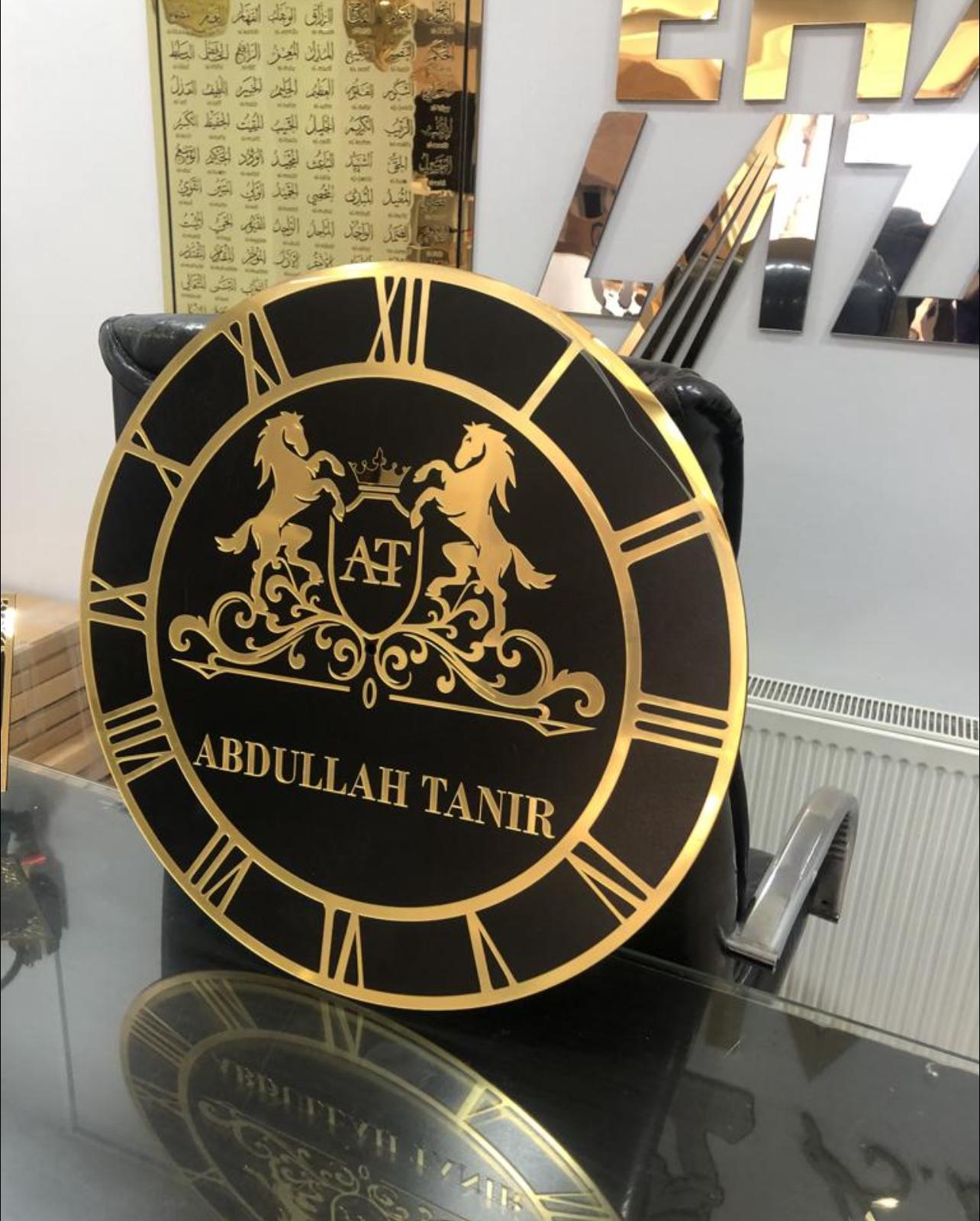 Saatimiz 3 mm ahşap zemin üzeri 1 mm aynalı pleksidir. Sessiz mekanizma ile çalışır ve tek çivi ile duvara asılır. Logo ve yazınızın görselini veya PDF dosyasını, eklenmesi gereken yazı veya görsel ve renk seçimini aşağıdaki RENK paletinden yaparak bize Whatsapp hattımızdan veya ehalazer@gmail.com adresinden iletebilirsiniz.
